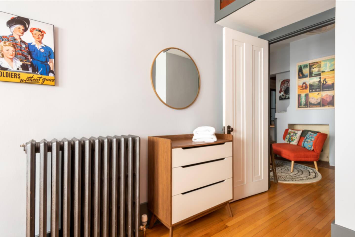 Our completely renovated 2 bedroom apartment is a centrally-located, cozy place to stay in Hudson, just 1 block to Warren Street and a 12 minute walk from the Amtrak station. Stay in and cook in the industrial/farmhouse galley kitchen, or enjoy all of the great restaurants within walking distance. Guests will enjoy staying in a home built in 1834 that has been tastefully updated, with a mix of modern and retro furniture, and quirky historic charm but with all the modern conveniences.