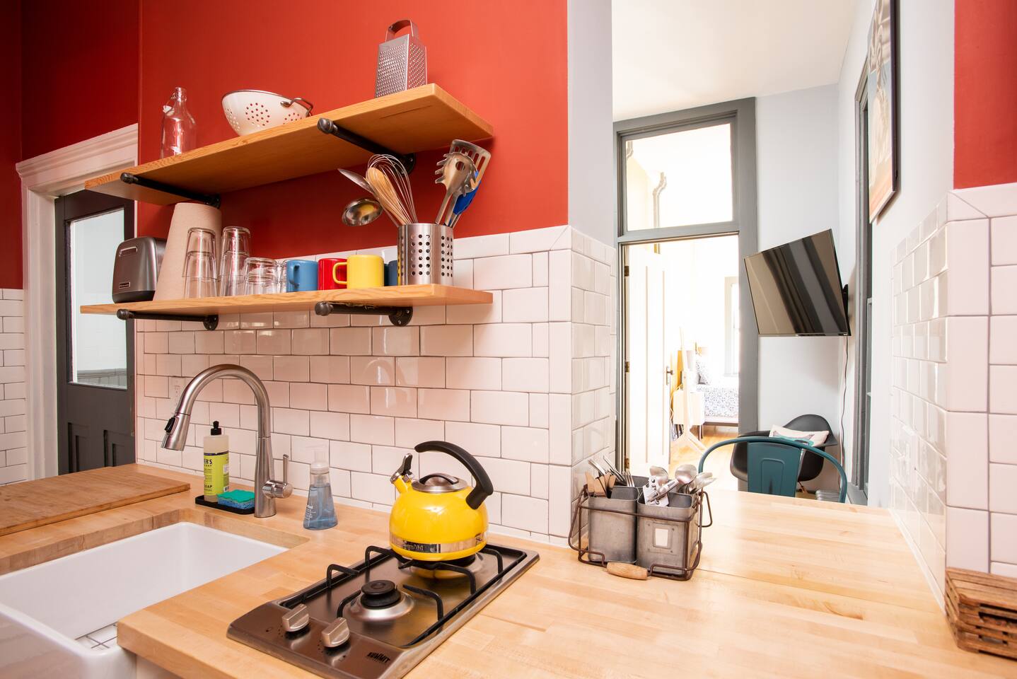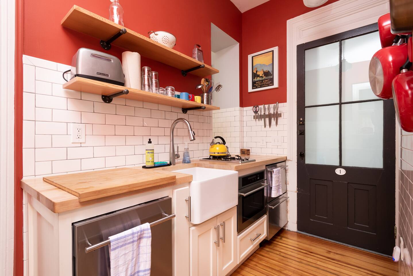 Our cozy, first floor, 3-bedroom apartment is fully-renovated and centrally-located, just 1 block to Warren Street, Hudson's "Main Street", and a 12 minute walk from the Amtrak station. Stay in and cook in the industrial/farmhouse galley kitchen, or enjoy all of the great restaurants within walking distance. Guests will enjoy staying in a home built in 1834 that has been tastefully updated, with a mix of modern and retro furniture, and quirky historic charm, but with all the modern conveniences.