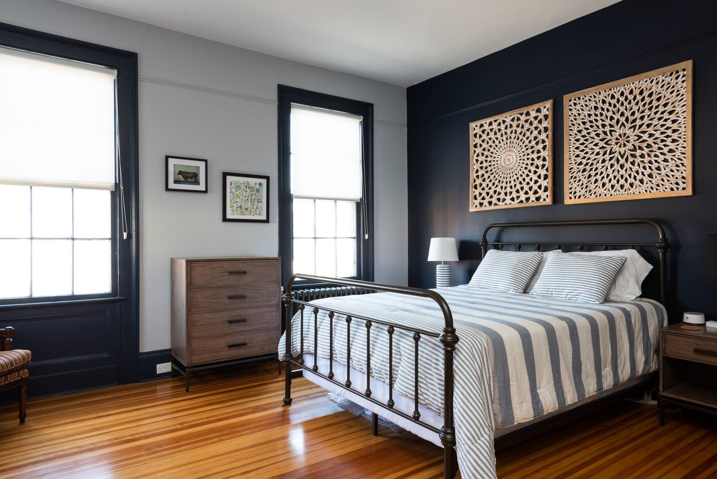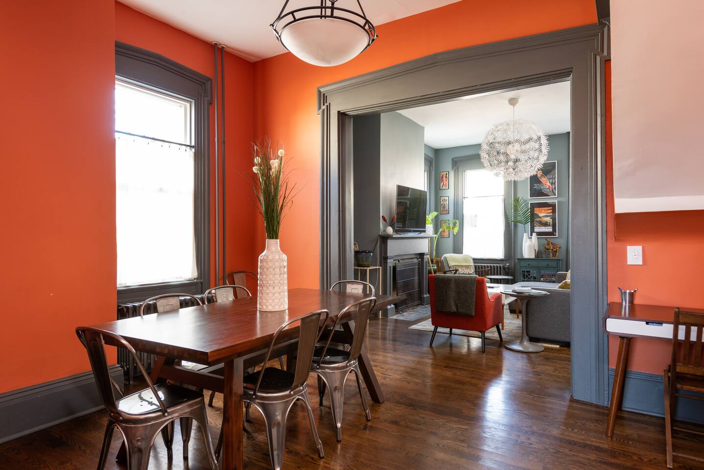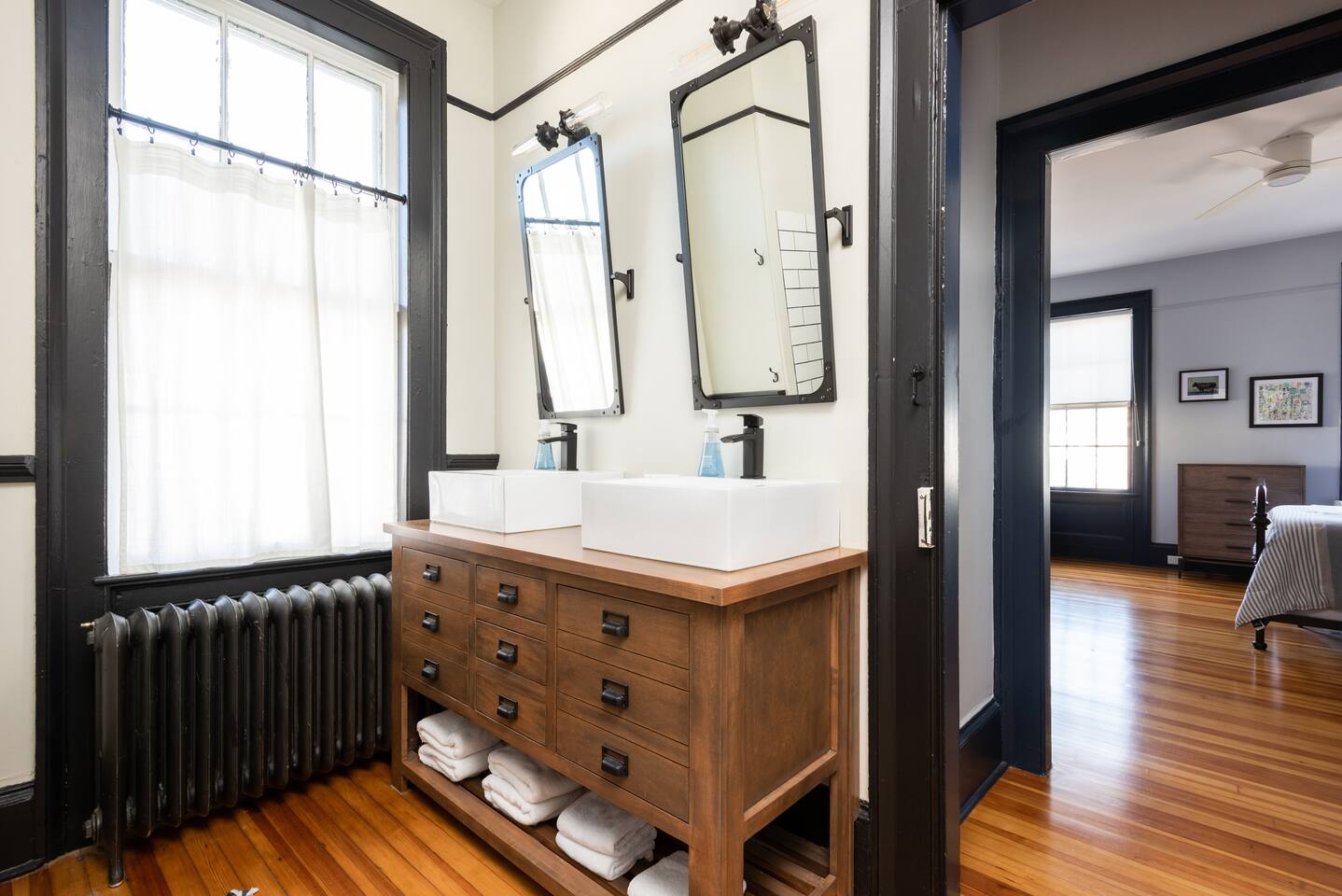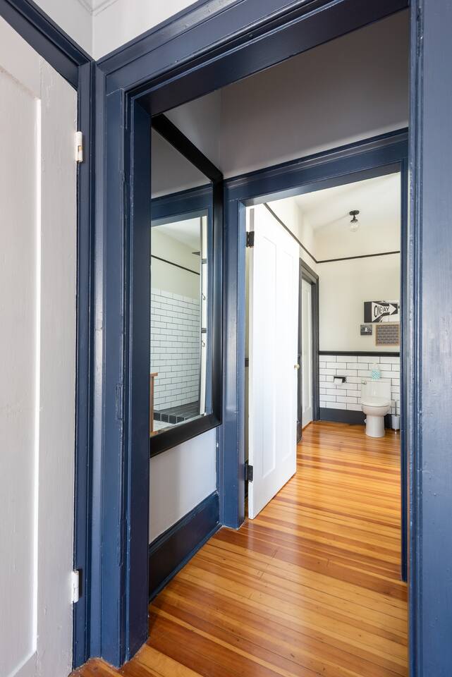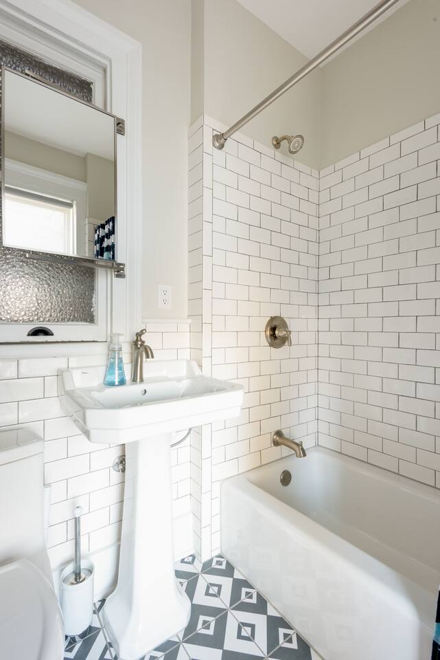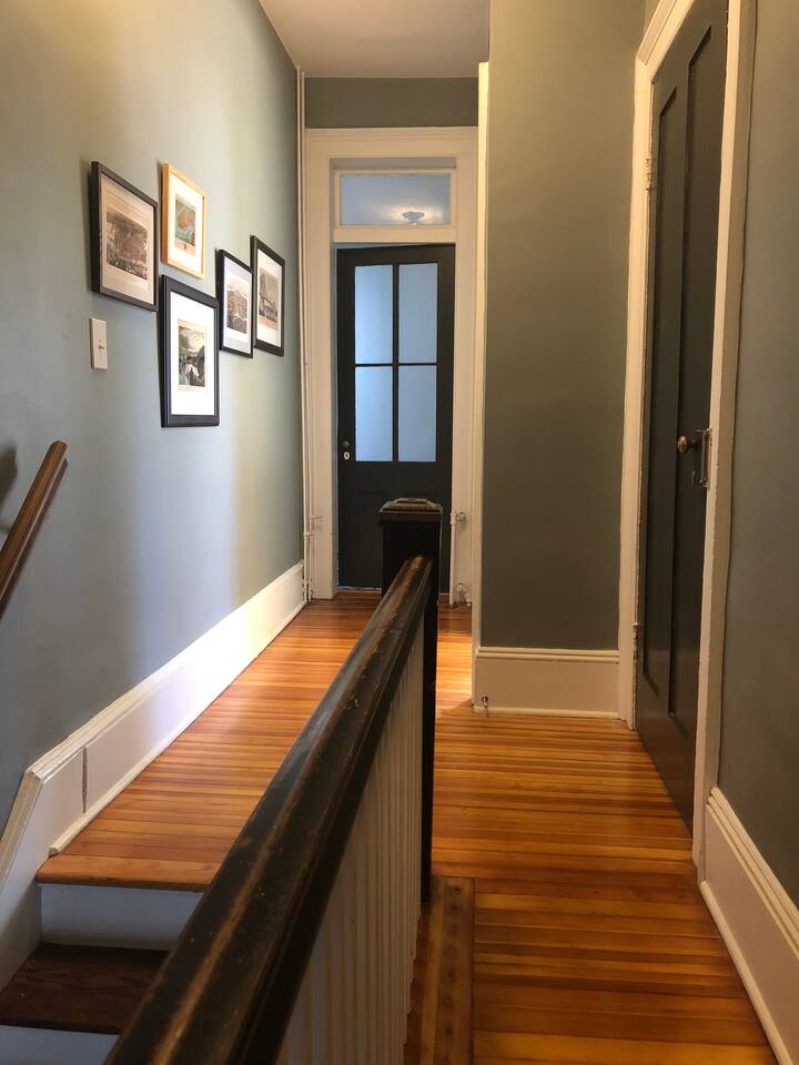 Our newly renovated, 2-story, 2 bedroom, 2.5 bathroom owner's unit in our multi-family house, has a full cooking kitchen, large living and dining rooms, a back porch, a luxurious master bathroom with rain shower, a butler's pantry and a laundry room with washer/dryer. The place is equipped with fast and reliable WiFi, and 2 ethernet-wired Roku Smart TVs with YouTube TV, HBO Max, Hulu, Disney+, AppleTV+, along with access to other app-based streaming services (there is no traditional cable/antenna TV service). Heating and cooling is controlled by ductless Mitsubishi AC/heat pump units and bedroom ceiling fans, with backup radiator heat monitored and controlled by a Nest Thermostat. **** Recent Renovations (2023-24): brand new Mitsubishi ductless AC/heat pump units in each bedroom and living area, new historic-style Pella double-glazed windows throughout the house, and blackout shades in all of the bedrooms, helping with temperature control and sound proofing. *** Have a larger group and need more bedrooms? If you think you might need more space or your group could grow, we have 6 more bedrooms located within 2 additional apartments in the same house.