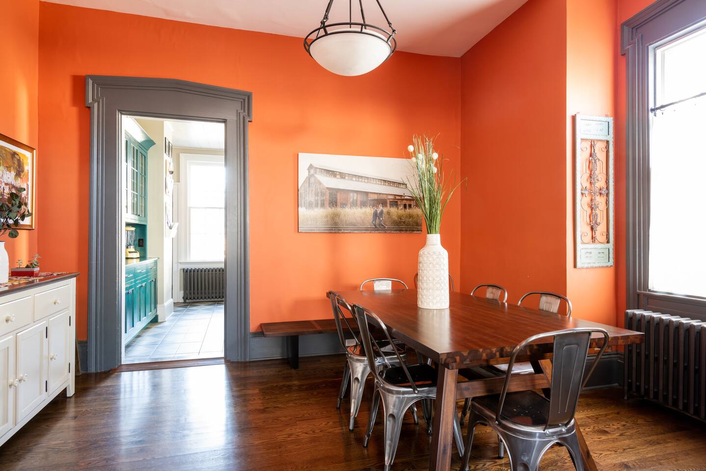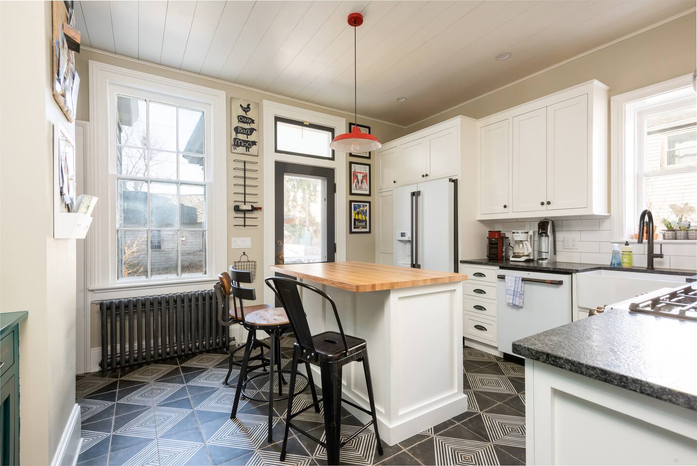 Stay in this historic home right in the center of Hudson! This is the 2 bedroom, 2.5 bathroom owner's unit in a 3-family house, fully updated with modern amenities. Spacious living space on two stories, complete with a cozy living room, dining room table that can seat 10-12, farmhouse-style kitchen, butler's pantry, laundry room, and back porch. All within 1 block of the restaurants and shops on Warren Street, and a 12 minute walk to the Amtrak train station.